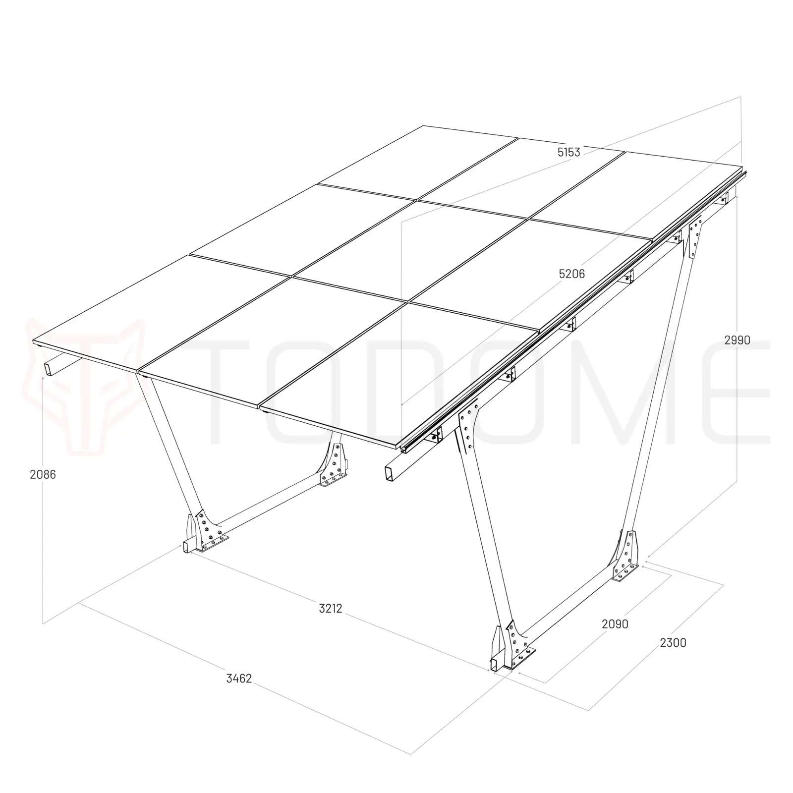 Poids de l'abri de voiture avec panneaux photovoltaïques670 kg1722 x 1134 x 30 mm